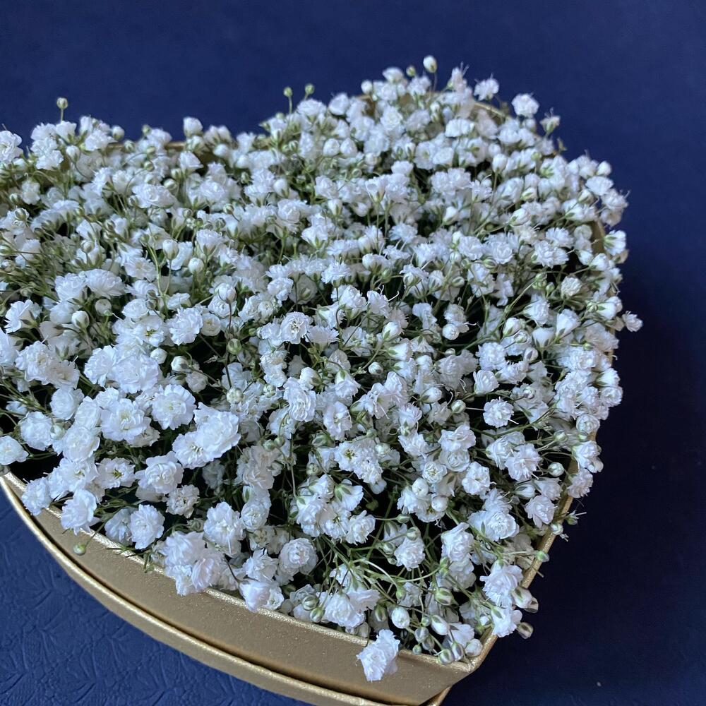 Гипсофила – 15 шт.Коробка сердце – 1 шт.