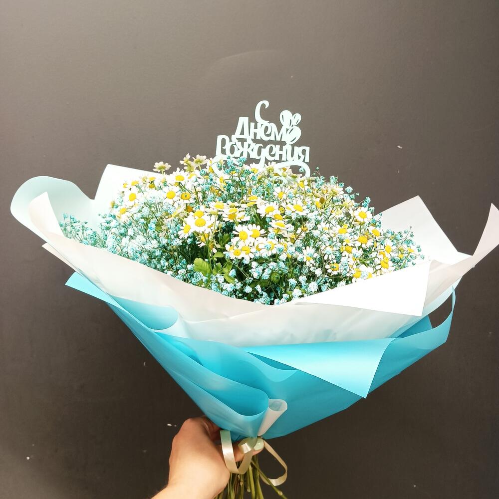 Матрикария – 5 шт.Гипсофила – 3 шт.Упаковка дизайнерская – 1 шт.