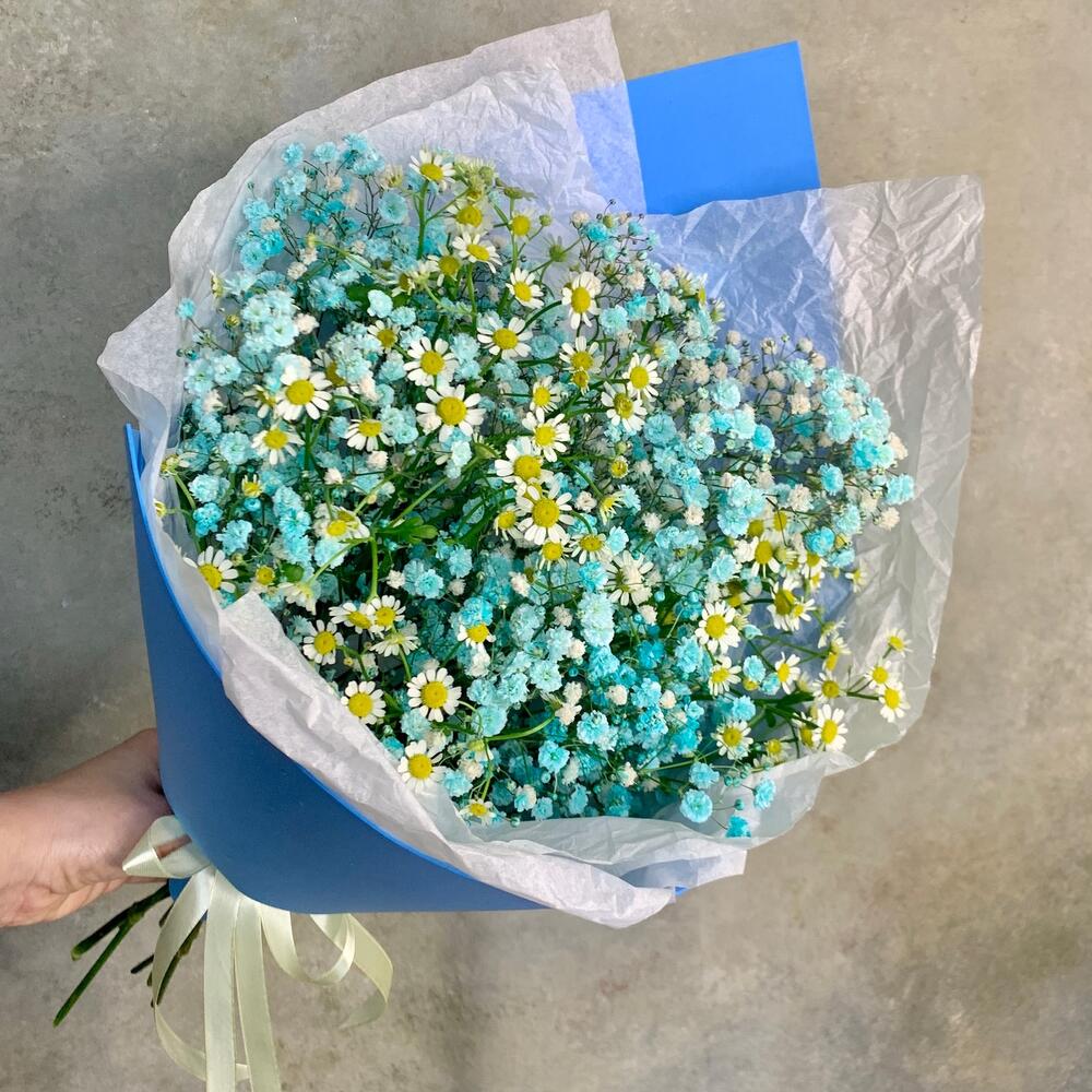 гипсофила радужная – 4 шт.Танацетум – 3 шт.Упаковка дизайнерская – 2 шт.