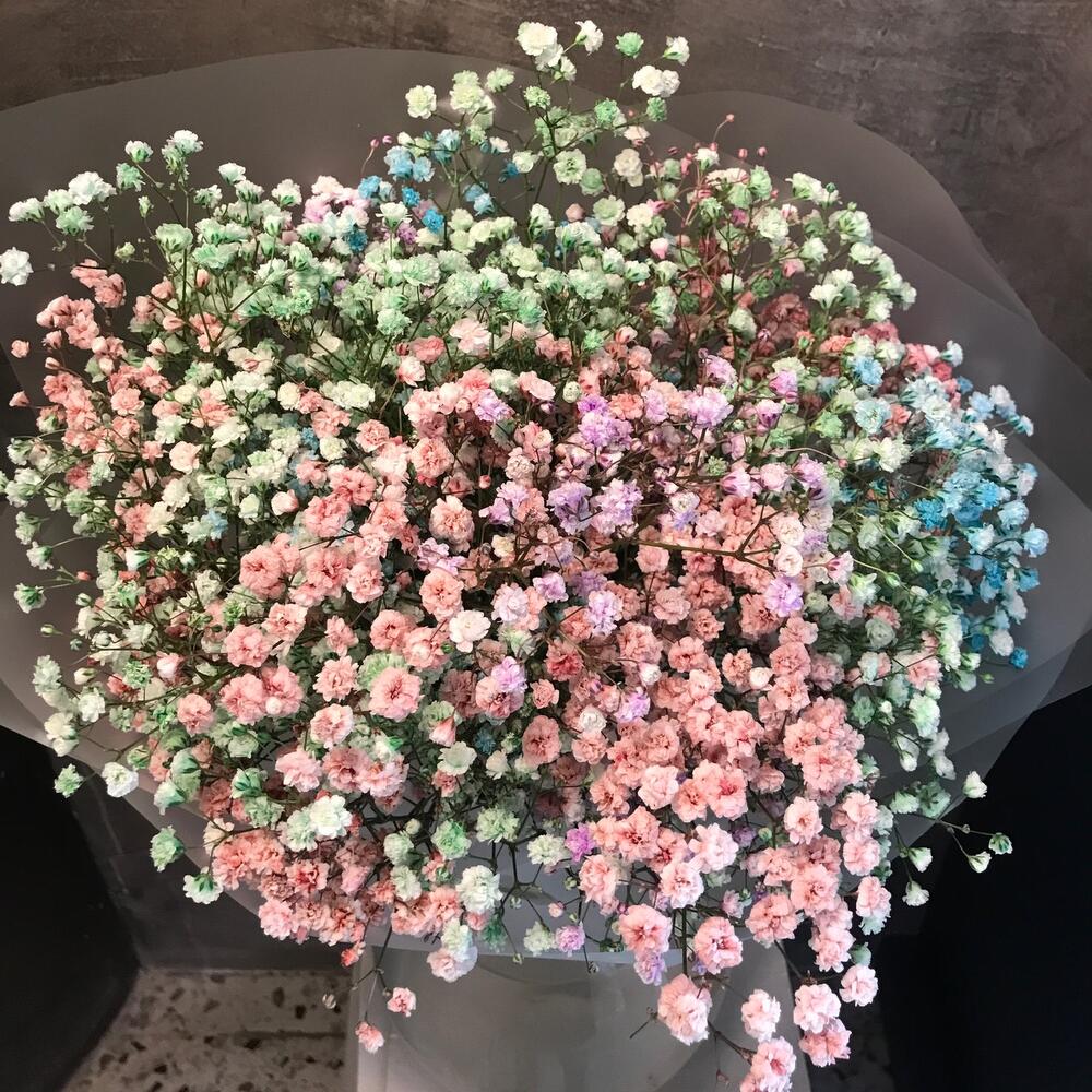 Лента – 1 шт.Пленка матовая – 1 шт.Средство для продления жизни цветов – 1 шт.гипсофила радужная – 9 шт.