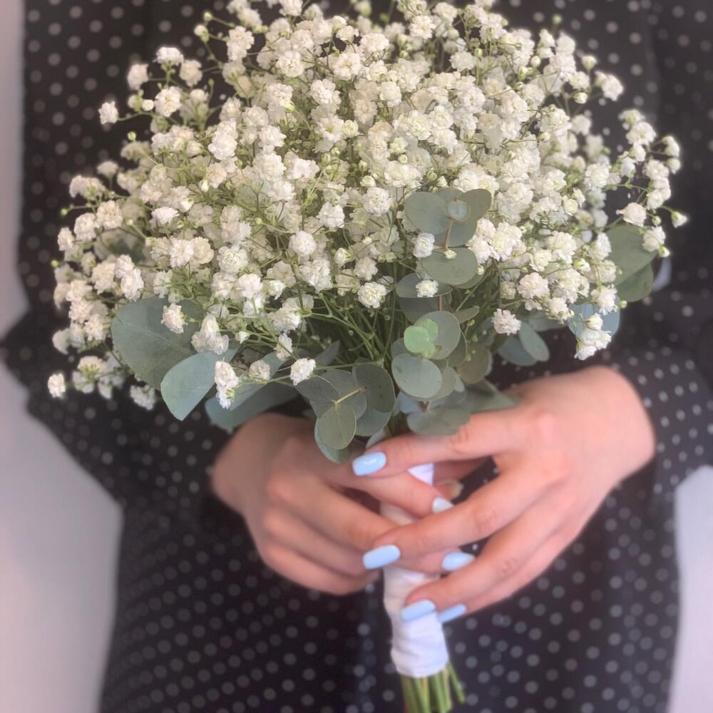 Свадебный букет гипсофила и эвкалипт