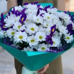 Букет с хризантемой Баккарди и ирисами