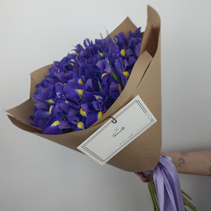 Букет из 29 ирисов с открыткой