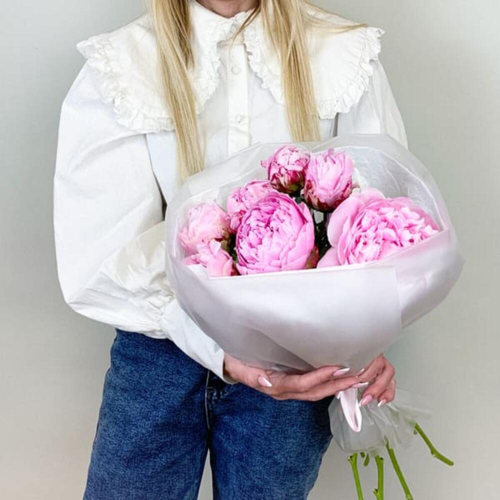 Букет с розовыми пионами Premium 7 шт