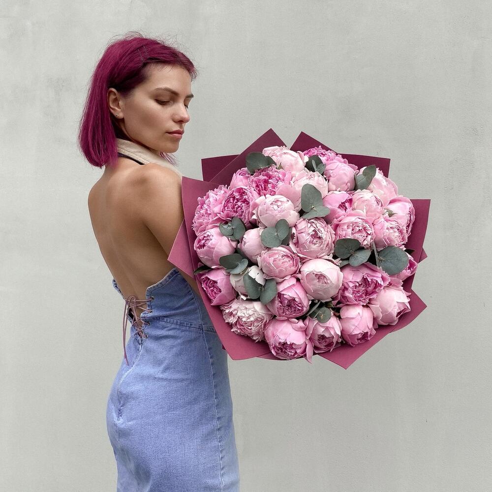 Пион Сара Бернар – 31 шт.эвкалипт синерея – 2 шт.