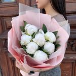 Лента атласная – 2 шт.Пленка матовая – 5 шт.пион мадам клод тейн – 7 шт.пленка полупрозрачная – 4 шт.