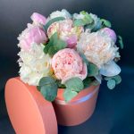 “Сиреневый туман” – композиция из гипсофилы в шляпной коробке