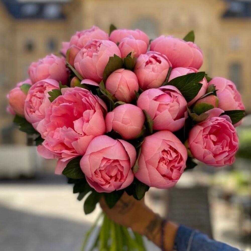 Пион розовый – 19 шт.Лента атласная – 2 шт.Открыточка с вашими пожеланиями – 1 шт.хорошее настроение – 100 шт.инструкция по уходу за цветами – 1 шт.коробка переноска – 1 шт.Кризал – 1 шт.