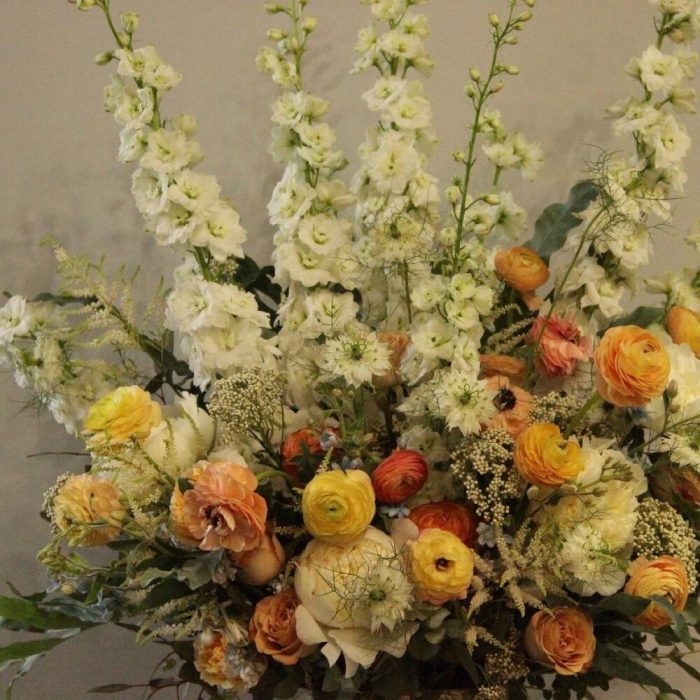 Золотые переливы – Дельфиниум, пионы, ранункулюсы