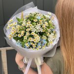 Букет Бохо из оксипеталума и танацетума