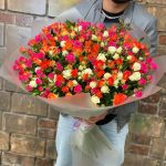Кустовая роза – 51 шт.Лента атласная – 1 шт.Дизайнерская упаковка – 5 шт.