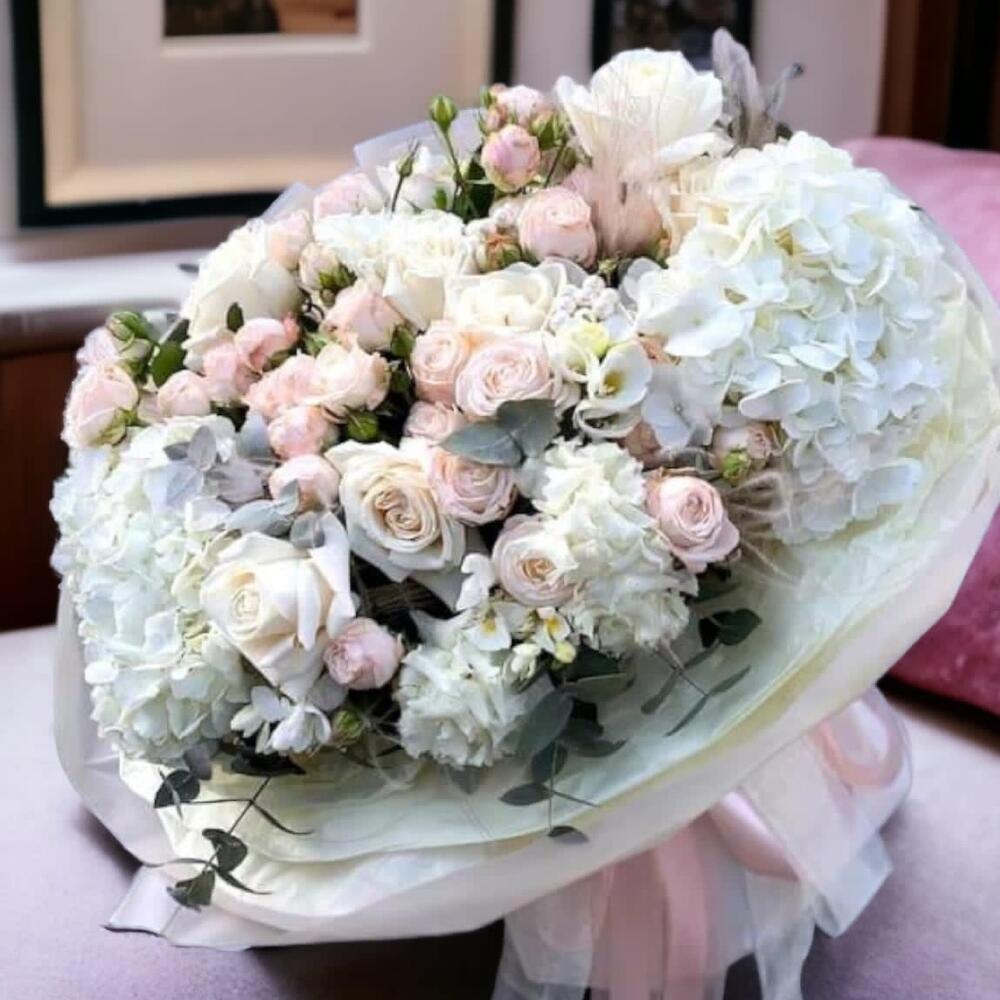 “Эвкалиптическая роскошь” гортензия и пионовидная кустовая роза