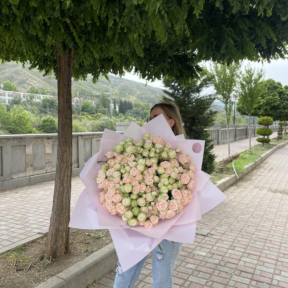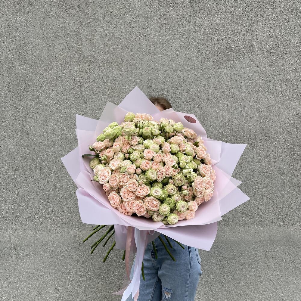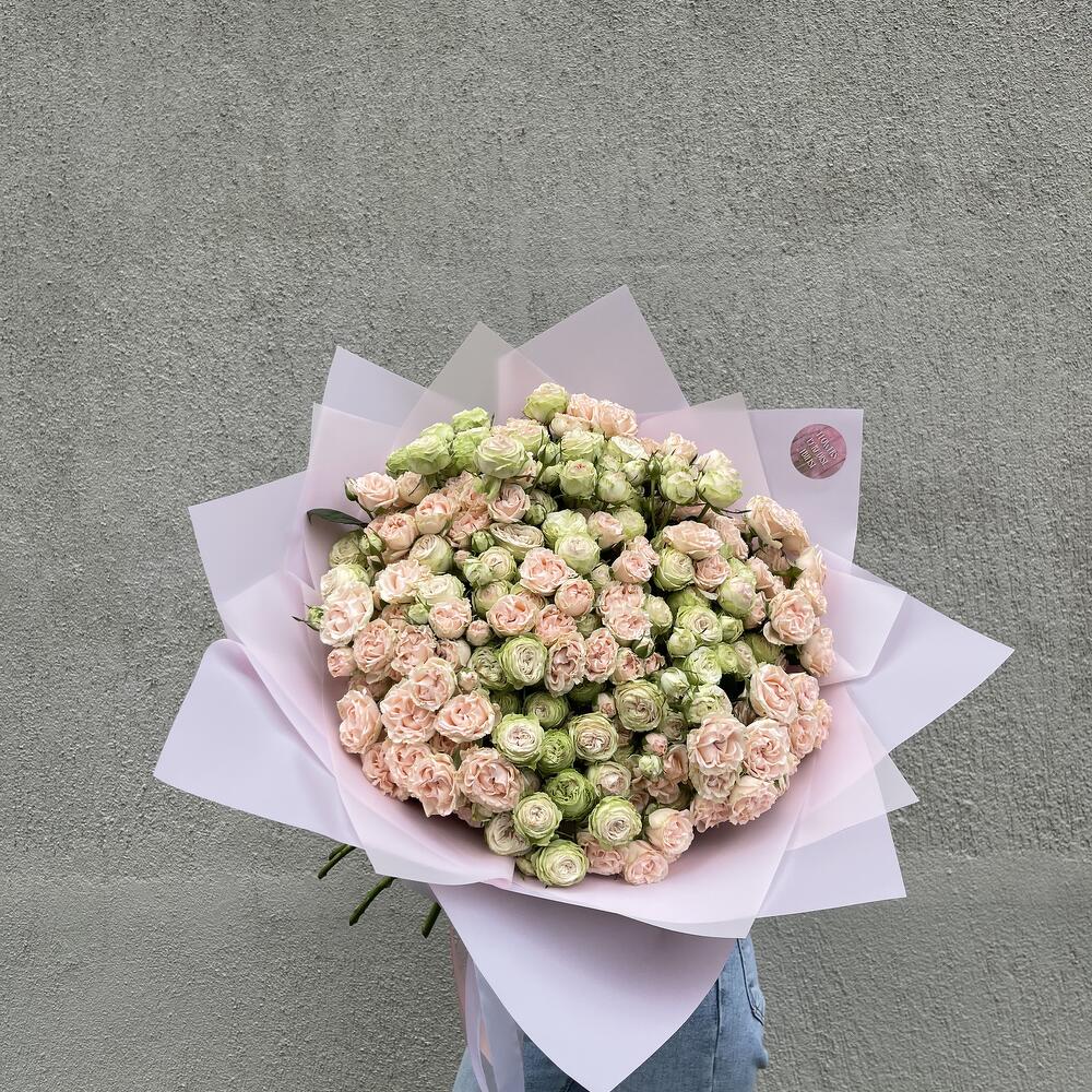роза кустовая (веток) – 30 шт. Упаковка – 1 шт. Атласная лента – 1 шт.