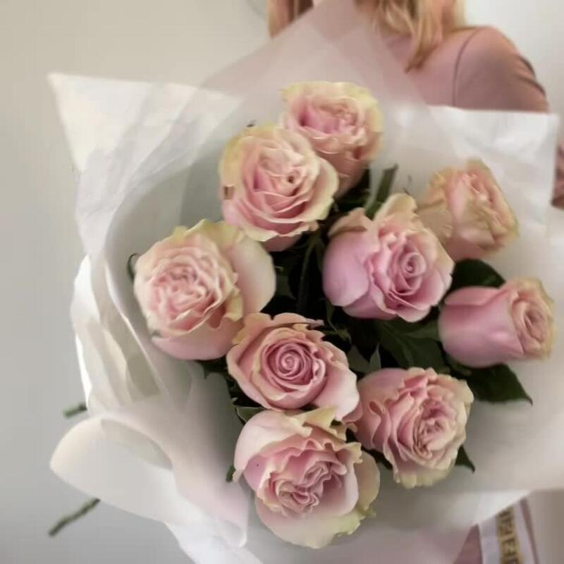 Букет из нежно-розовых роз Пинк Мондиаль 9шт