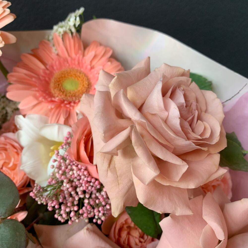Персиковый букет в дизайнерском оформлении