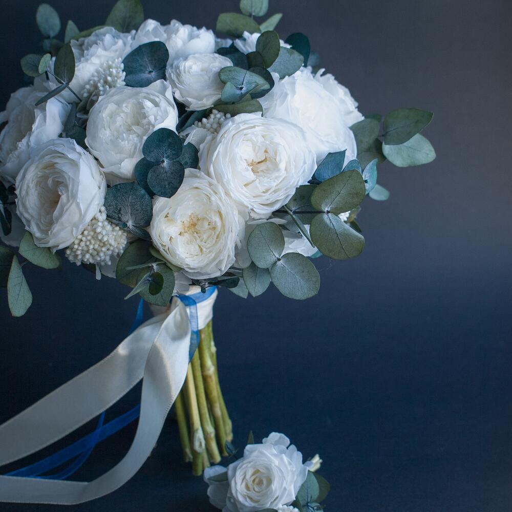Букет невесты из стабилизированных роз и эвкалипта