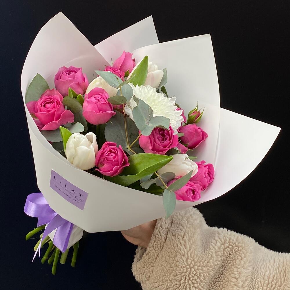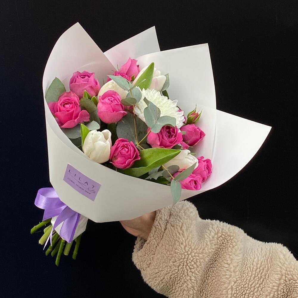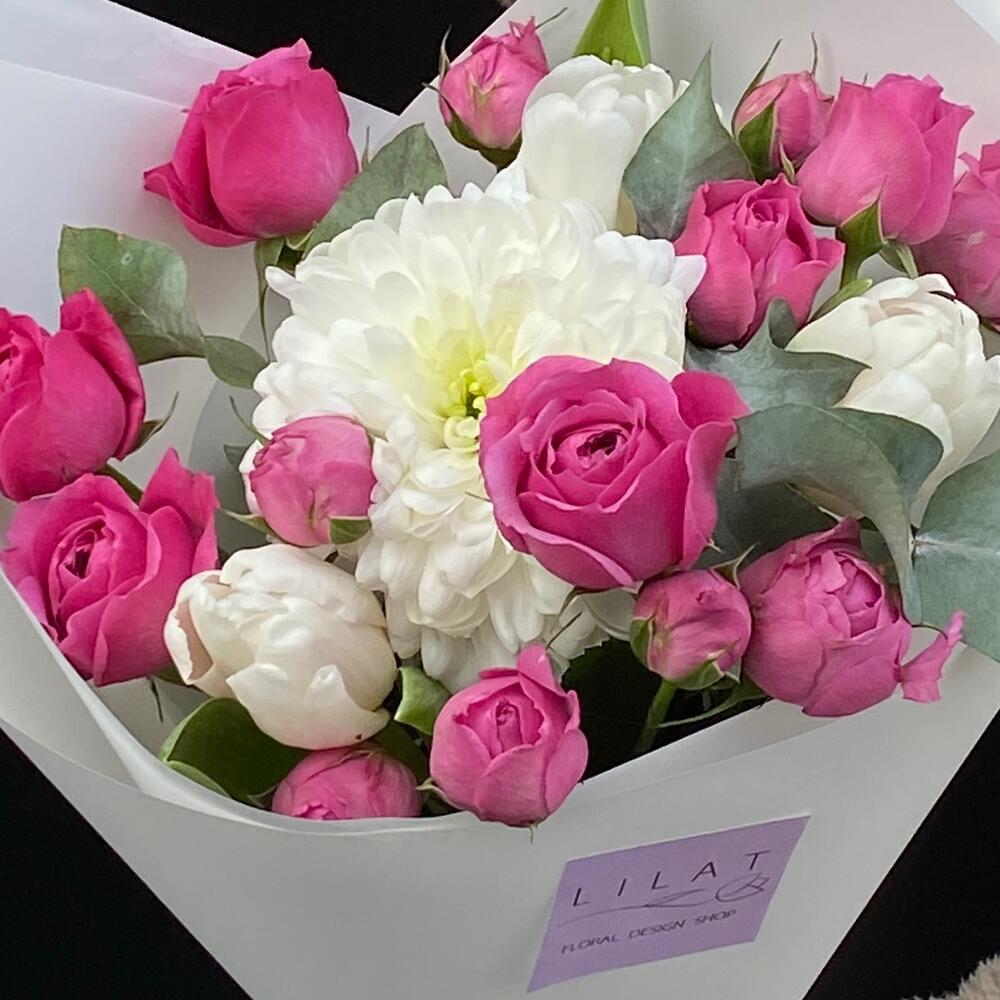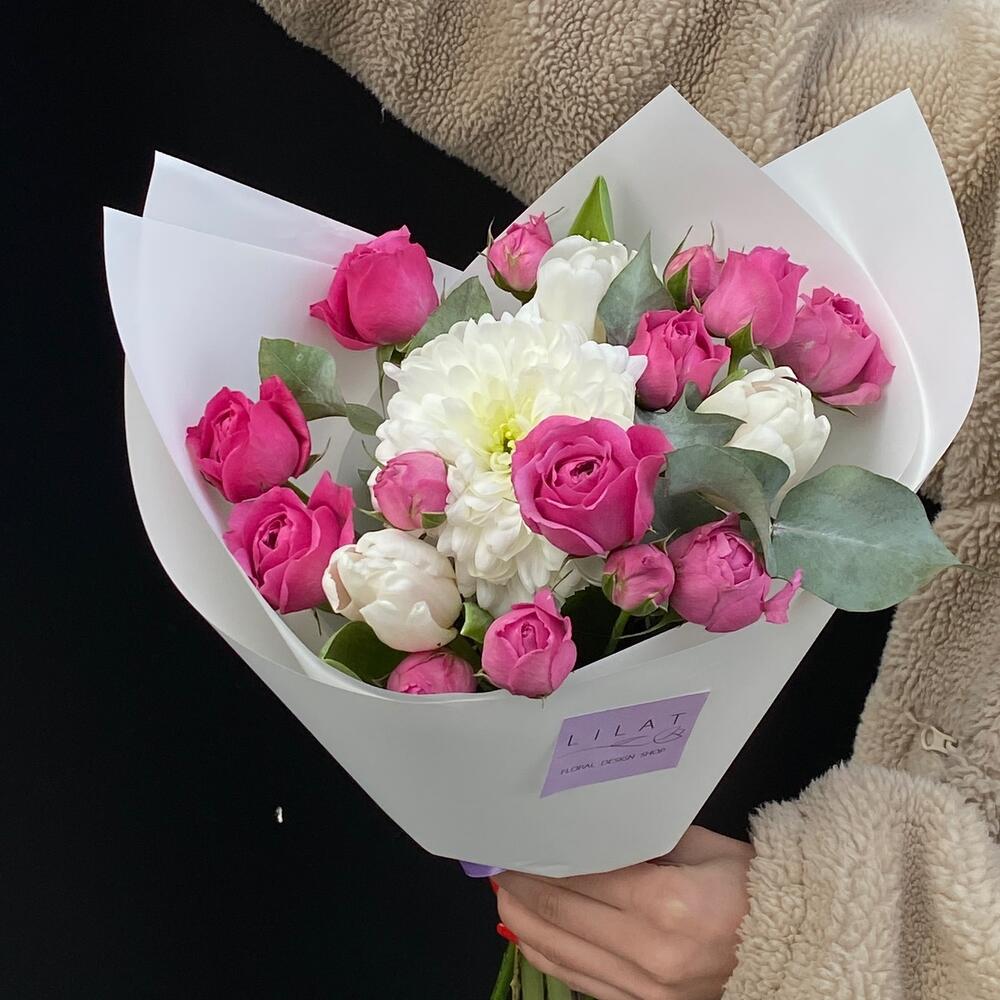 Гвоздики, Кустовые розы, Пионовидные розы, Розы