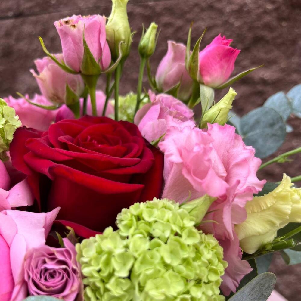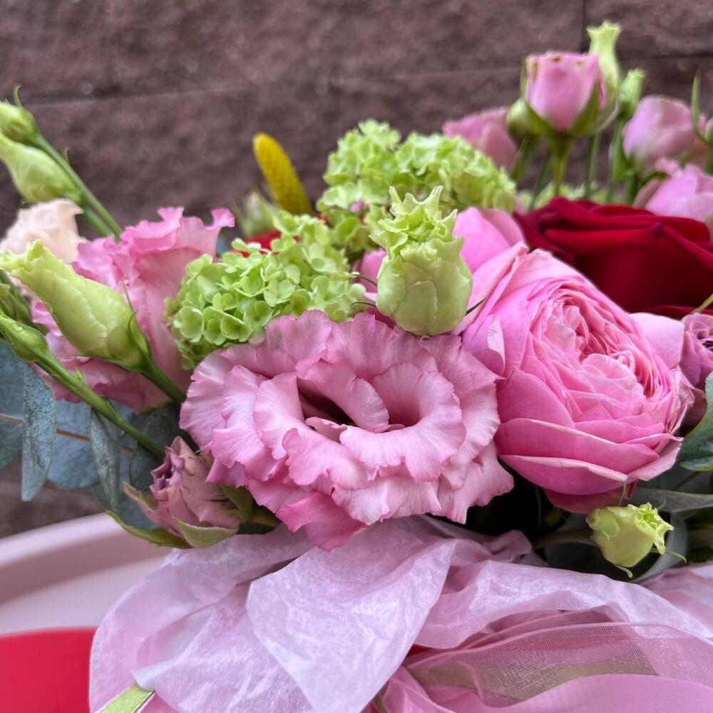Гвоздики, Лизиантусы, Розы, Тюльпаны