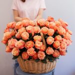 Корзина со 101 пионовидной розой Кахала