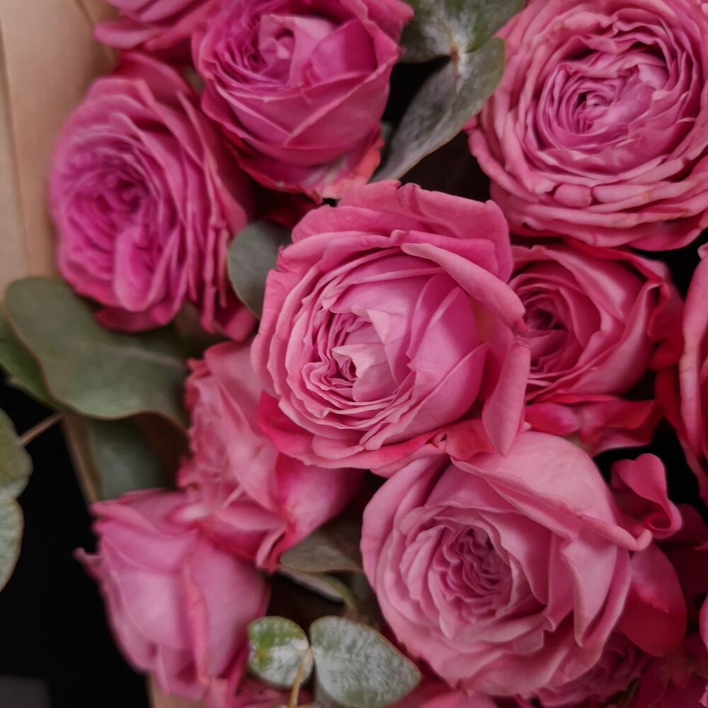 Эвкалипт – 2 шт.Упаковка – 1 шт.Аквапак – 1 шт.питательная смесь для срезанных цветов – 2 шт.роза кустовая артезия – 11 шт.