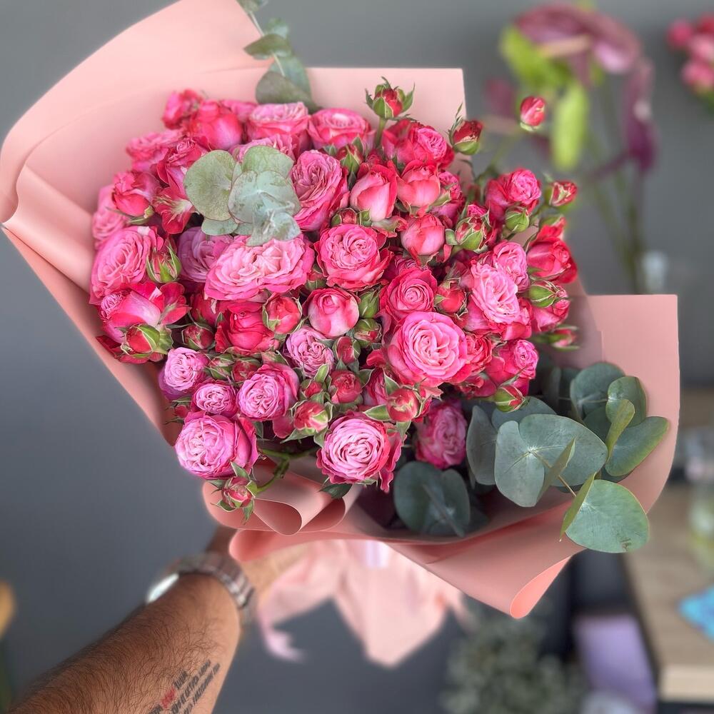 Кустовые розы, Лизиантусы, Розы, Сухоцвет