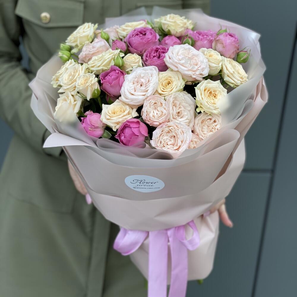 Букет Розовые сладости из 9 веток пионовидных роз