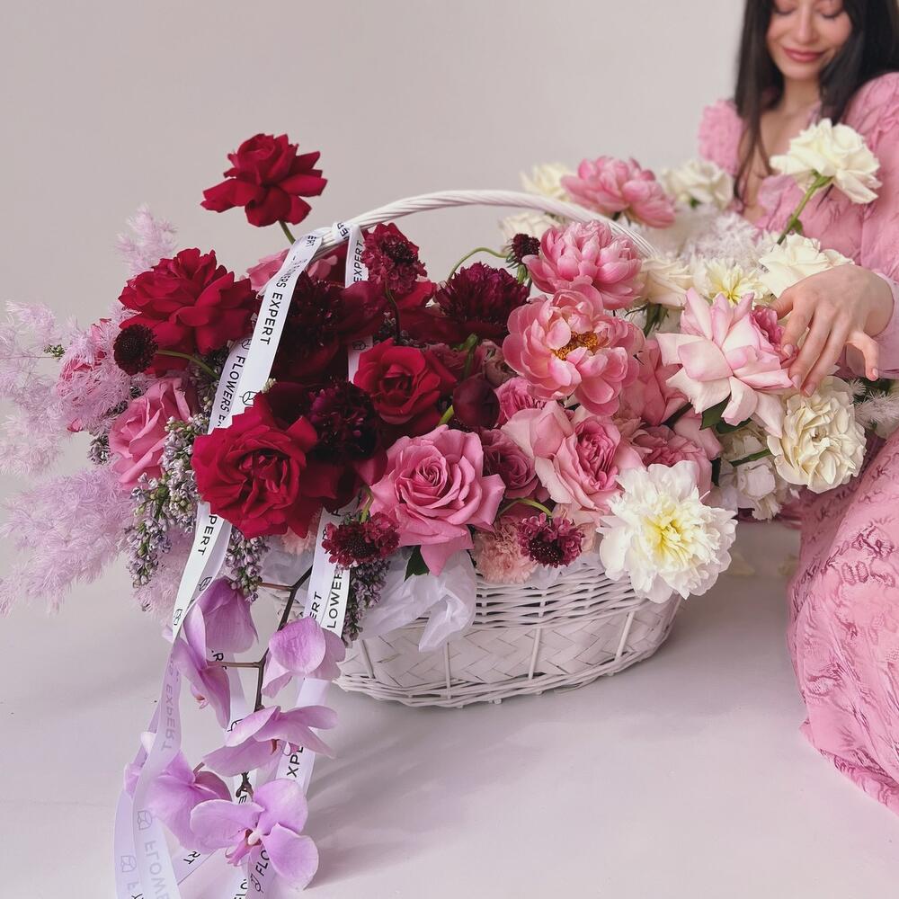 Огромная корзина с пионами и орхидеей “VERONA”
