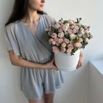 Шляпная коробка розовых пионовидных кустовых роз (N 161)
